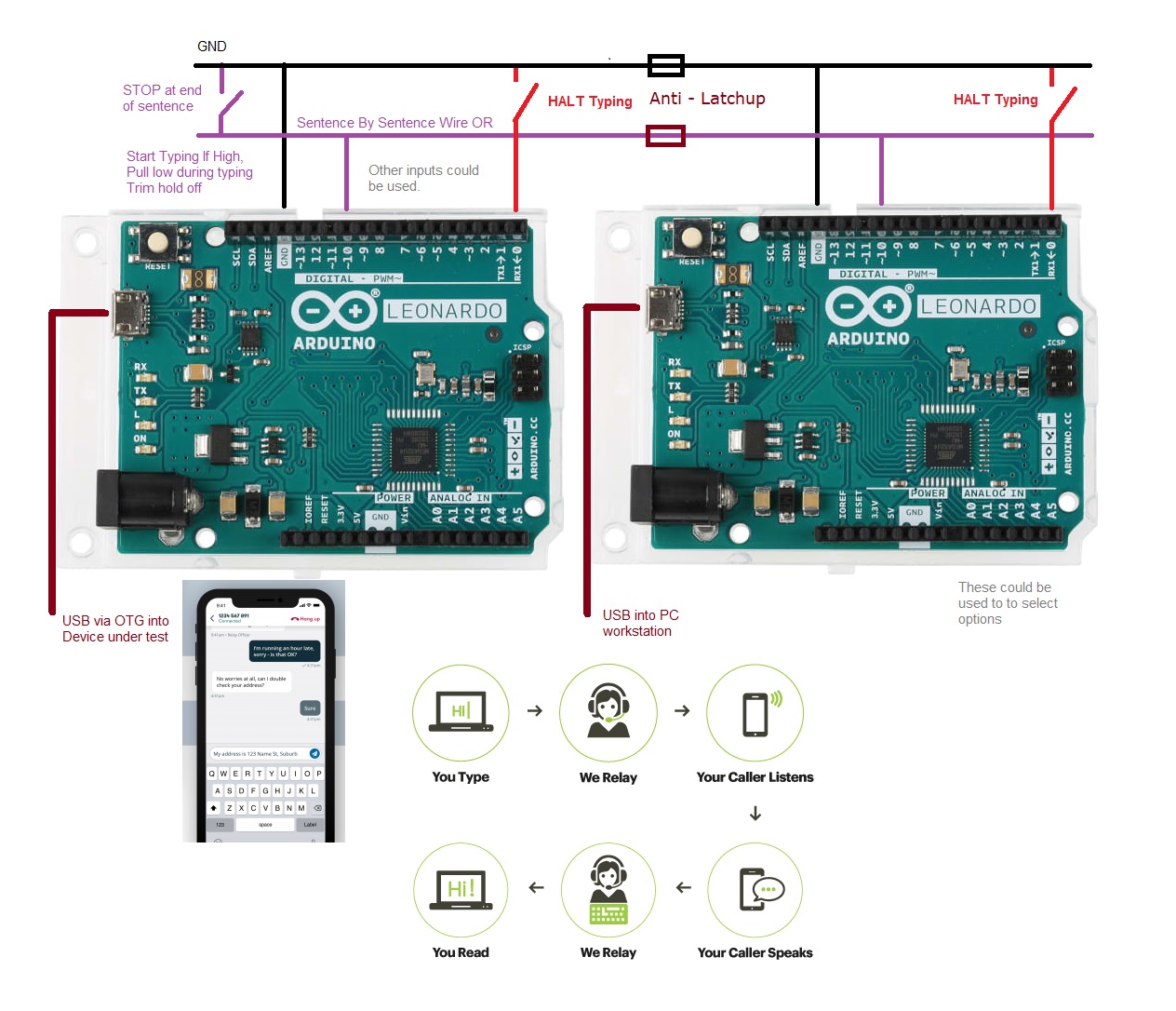 It would be nice if the devices can type in turn. A bit of wire enables the devices to co-ordinate when they are typing.
