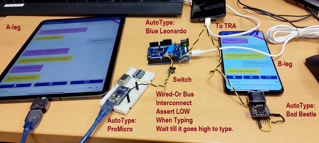 Below is a picture of various Atmel 32u4 based Arduino Leonardo variations AutoTyping into the App.
