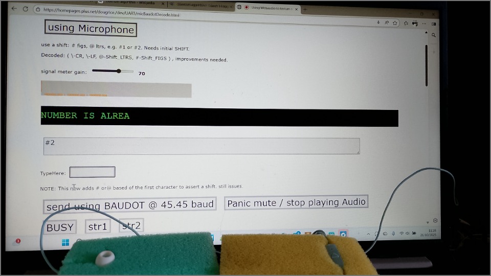 https://www.dougrice.co.uk/webaudio/micBaudotDecode.html - a mash up / proof of concept to use earbuds to test a Ultratec Supercom Textphone using BAUDOT